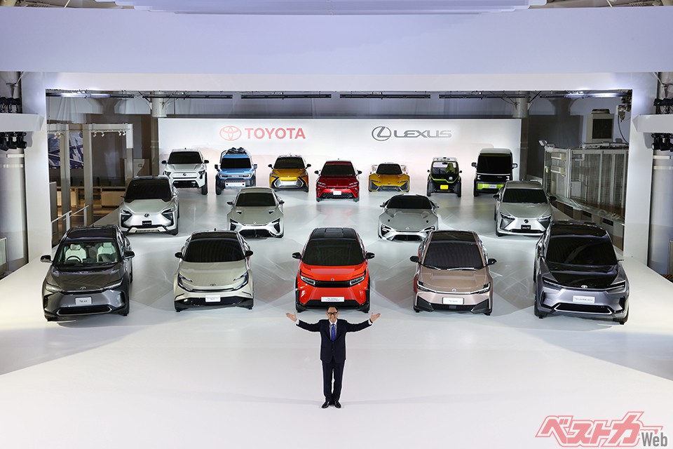 これら16モデルのうち、量産車はbZ4Xのみだ。また、レクサス初の量産型EVとしてRZについてはテスト車両の走行風景が動画で流れた。