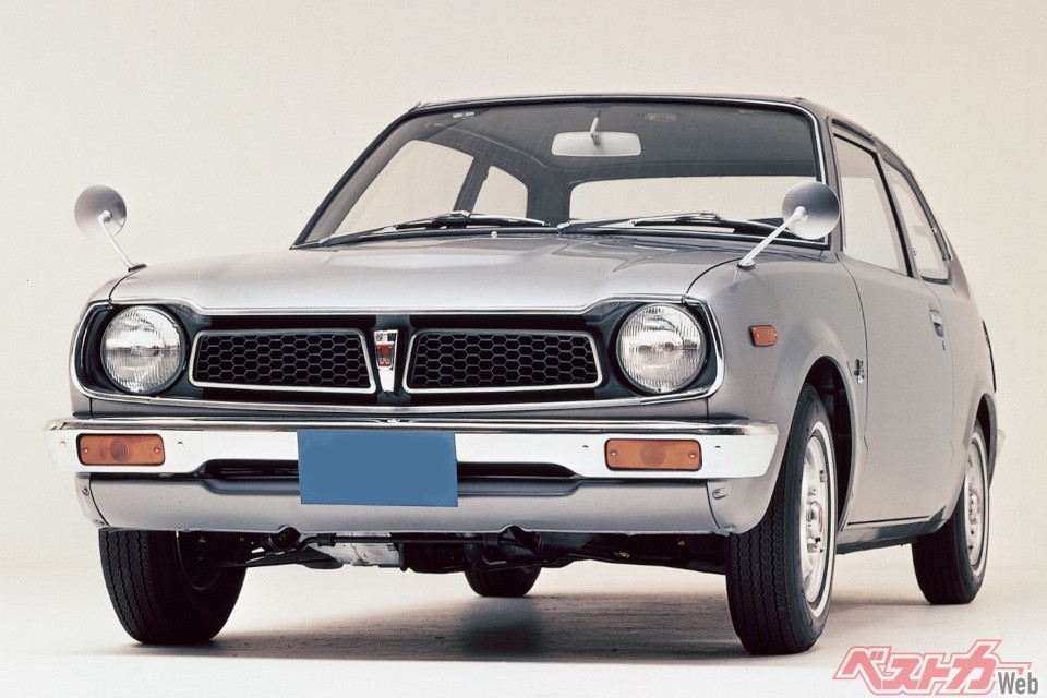 「市民のクルマ」として長く愛され続けるホンダシビック。1972年7月、初代シビックの発売を開始。1973年12月、排ガス浄化技術のCVCCを採用した1.5Lエンジン車を追加。価格は41万8000円~。