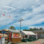 ショップでは、地元柏崎の海産物や越後のお土産品も豊富。串焼きや串だんご、ソフトクリームなどの出店もあり、屋外のベンチやテラス席で軽食を取ることも可能。