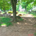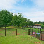 奥行きのあるフィールドは、土ベースで所々に草が生えている。木陰部分も広く、昼間でも涼しく過ごせる環境。大きめの岩もあり、天然のアジリティとして遊び甲斐がありそうだ。