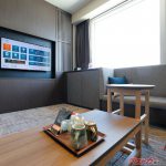 気になる客室は全9種類。すべてダブルもしくはツインルームで、一部エキストラベッドを使えば3名で使用できる。最も部屋数の多いスタンダードダブルでも部屋面積17.7〜19.3m2と、ゆとりある空間になっている。最上階の12Fはコンセプトフロア「富山」を名乗り、他フロアより天井高が30cm高く、また客室内のコーヒーカップやグラスには富山由来の工芸品をセレクト。地元で人気の「アルパカコーヒー」の珈琲ドリップパックや銘菓「甘金丹」なども用意されている。
