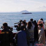 当日は快晴だっただけでなく海上のコンディションも最高で、波の高さも1m程度と冬の玄界灘としては珍しいほど低波。何度も「N700S」の左右を再接近しながら往復し、存分にその貴重なシーンを見学することができた。