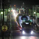 深夜、ひっそりと静まり返った国道205号の沿道には底冷えする深夜にも関わらず、カメラを持った人々がその瞬間を待っていた。すると緑の回転灯をつけた車がやってきた。これは「誘導車」などと呼ばれ、後続する「新幹線」の搬送に支障がないかをあらかじめ確認し、必要に応じて交通整理を行う。時折、見学者の路上駐車が陸送に支障をきたすことがあるので、車で見学に向かう際は駐車場等をきちんと利用したい。