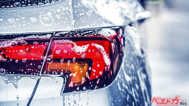 高圧洗浄機を使用するのは、双方に共通するが、汚れ落としにかける水の量は、専門店の方が圧倒的に多い。そして、ムース上になった泡で滑りを良くし、摩擦を最小限に小さくしながらクルマを洗っていくのだ。