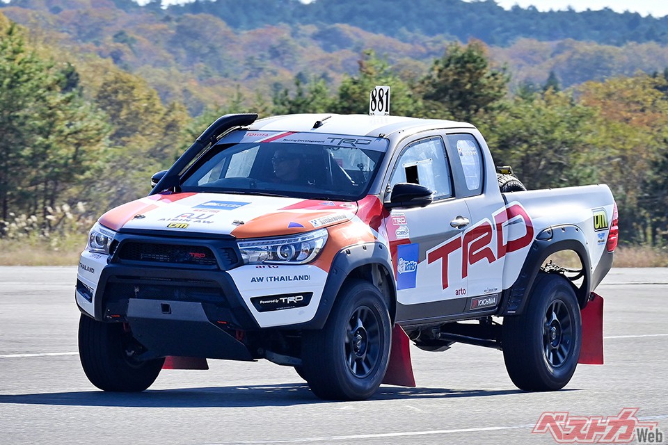 海外でも活躍している塙郁夫(はなわいくお)選手のドライブでTRDハイラックスのポテンシャルを体感させてもらった。活躍している選手の助手席に乗せてもらうことがないので新鮮だった。