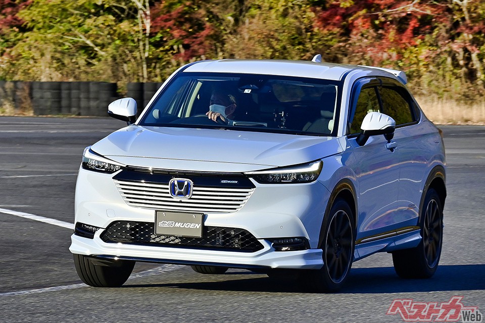 フロントマスクが特徴的なヴェゼルは、いかついマスクのわりに女性人気が高い。