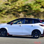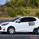 ロールケージが入っていると旋回方向のリアタイヤが浮いてしまうが、このヤリスは常にタイヤが路面に接地していてサスペンションがしっかり仕事をしている。