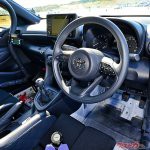 国内向けラリー仕様のヤリス。入門カテゴリーの車両ベースとしてはちょうどいい。ラリーではターマック、グラベルでサスペンションを交換するのは常識。