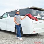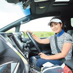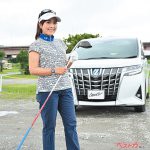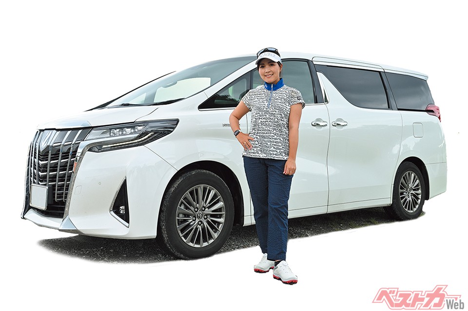 荷物をたっぷり積んだアルファードで、取材場所に現われた女子プロゴルファーの青木瀬令奈さん。身長153cmの小柄な体で、大きなアルファードを乗りこなしている。