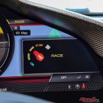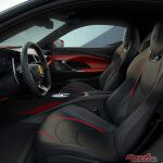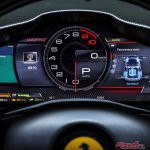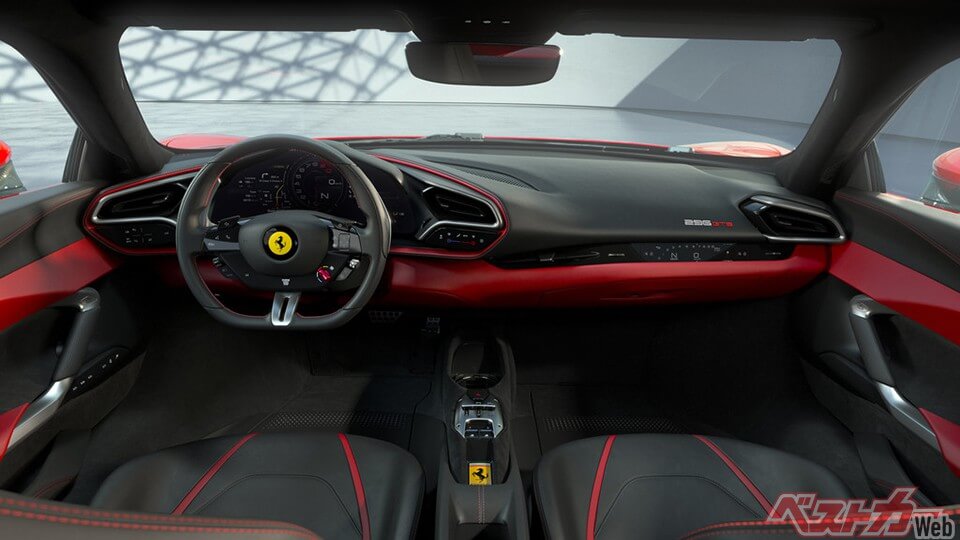 コックピット環境はSF90ストラダーレやローマから採用が始まった最新の電装デザインで構成されており、エンジン始動をはじめとして大半の機能はステアリングスポークのタッチスイッチで操作する仕組みだ。