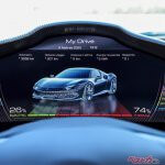 ドライブモードは、主にシャシー側の電子制御を場面別に切り替える従来の「マネッティーノ」がステアリング右の赤いノブで、パワートレーンのセットアップを切り替えるハイブリッド用の「eマネッティーノ」がステアリング左のタッチパネルで切り替えることができる。