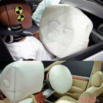 ただ決定的に危険なレベルかとなれば微妙。エアバッグは適正なタイミングで展開するようだ。とはいえ、いずれにしろ規制値をクリア出来ない可能性があるのは間違いない。その対応策のひとつが「吊紐付き」の採用。安価なエアバッグはサッカーボールのように丸く展開するため、顔面がズレやすい。吊紐付きなら(コストアップ要因になるものの)正確な展開コントロールを出来る。