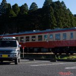 走る列車をバックに愛車を撮影。教習所の受講料や最初の車の購入費など、やはり初期投資が一番かかる。しかし初期投資に見合う楽しみがある