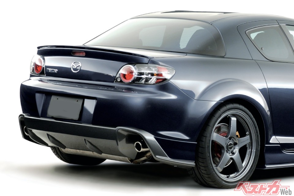 マツダ最後のロータリーエンジン車。駆動方式はFR。新設計された654cc×2ローター自然吸気の13B-MSP型エンジンを採用。発売当初のスペックは、最高出力250ps/最大トルク22.0kgm(6速MT車)。大人4人が乗車できる4シーターで、観音開き型のリアドアを採用した点がユニークでした。