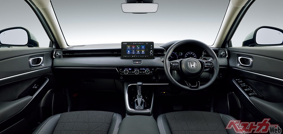 特にe:HEV・Zとe:HEV・PLaYでは、内装の装飾類も豊富に採用した。ヴェゼルe:HEV・Zとe:HEV・PLaYの質感は、CR-Vを上回り、クラスを超えた印象を受ける。