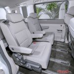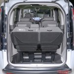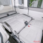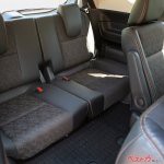 3列目は跳ね上げて格納するフリード。荷室長は長くなるが跳ね上げたシート分だけ荷室幅は狭くなってしまう。Cピラーに面した後方側面の窓を隠し、視認性が悪くなることもデメリットだ。