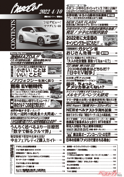 マツダの今後の戦略を暴くSuper SPY Scoopに始まり、ベストカー独自の視点による試乗&テストものも充実しております。