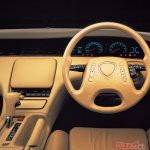 ユーノスコスモ以上に時代の先端をいく尖ったデザインだった。独創的なグラス・トゥ・グラスのラウンドキャノピーを特徴とする2ドアクーペで、フロントマスクも個性的だ。このフォルムには今でもシビレる。その反面、インテリアはオーソドックスなデザインと感じられた。