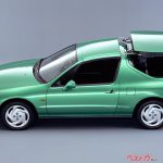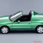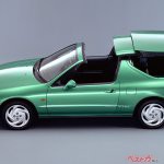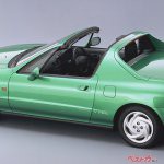 それ以上に、スポーティ派は衝撃を受けている。衝撃は、画期的なトランストップを採用していたことだ。手動タイプもあるが、主役はスイッチ操作によって室内からルーフを開け閉めできる電動式のトランストップだった。デザインは強烈な個性を放っている。ボディカラーも鮮やかなグリーンをメインに据えていた。