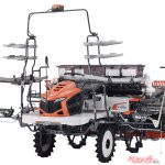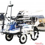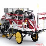 そして田植機。農業の行程の最初の方に登場する機械で、動画などに見たことがある人も多いと思われるが、カマキリの前脚のようなアームを使って、稲をサクサクと田んぼに植えていく、あの機械だ。こちらもコンバイン同様に、同時に作業するレーンの数が多いほど大型のものとなる。