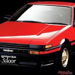 日本の自動車メーカーで初となるミッドシップモデルとして、1984年に登場した「MR2」。5ナンバーサイズのコンパクトなボディにミッドシップレイアウト、直線基調のデザインに低いボンネットというスタイリングで、抜群にリトラクタブルヘッドライトが似合っている。