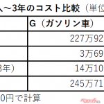 このヴェゼルでのシミュレーションでは、年間5000km程度の走行距離の場合、新車から3年までのコストはHVに比べて車両価格の安いガソリン車のほうが抑えられるということになる。