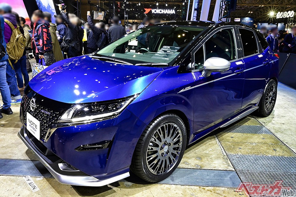 ●ノート オーテック カスタマイズ…17インチホイールとローダウンでスポーティに仕立てた参考出品車。