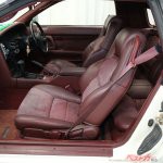 スーパーホワイトパールマイカのボディに同色系サイドモールカラーが組み合わされている。インテリアカラーは非常に珍しいマルーンで、本革+エクセーヌのオプショントリムだ。オドメーターは7.7万kmを指していた。