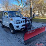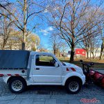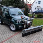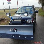 こちらミュンヘン市では冬場には見慣れた光景なのですが、除雪車のショベルを搭載したジムニーです。小回りも利く事から細い住宅地の道路や、アパートの敷地の除雪もお手の物です。四駆のお陰で多少の雪道でも雪かきをしながらぐいぐいと進む事ができるのです。