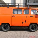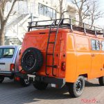 とはいえ驚くのはこれから。次の1台はさらに圧倒的だった。知る人ぞ知る、世界的にも希なワンボックス4WDのWAZ(ワズ)3909で、懐かしい三菱デリカスターワゴンのご先祖様。今、ルパルナスではミリタリーなカーキとオレンジというふたつのボディカラーが選べるが、サイズからしてラーダニーヴァ以上の時代錯誤感。