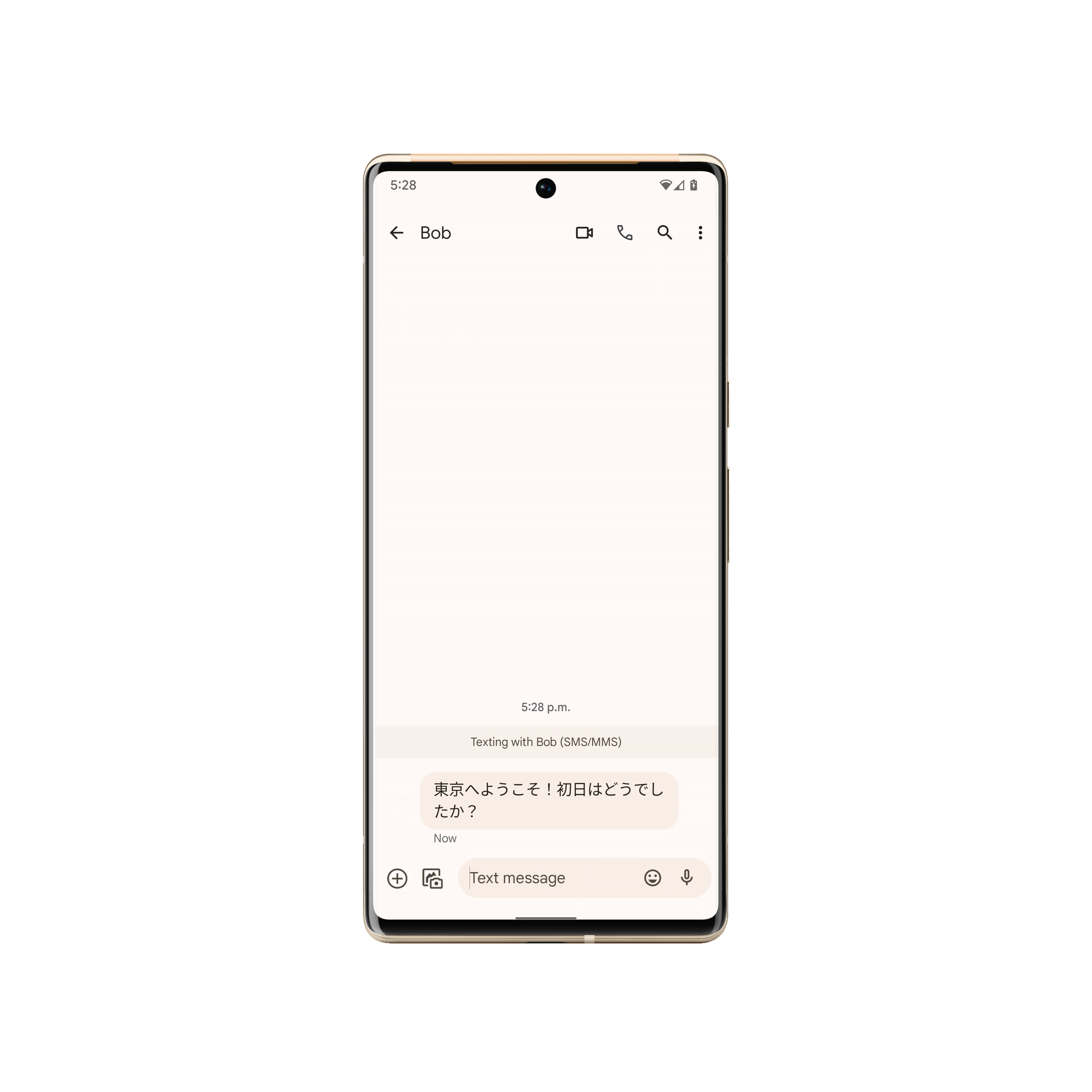 新機能のリアルタイム翻訳を使用すると、英語、フランス語、ドイツ語、日本語など、さまざまな言語の人々とメッセージをやり取りできます。チャットアプリの翻訳では、LINE や Facebok などのチャットアプリのメッセージがシステム言語と異なるかどうかを端末が検出し、異なる場合はチャットアプリ上で自動的に翻訳を表示します。この検出と処理はすべて、Google Pixel 独自の Private Compute Core により、デバイス上で行われるため、データがデバイスから送られることがなく、ネットワーク接続がない状態でも機能します*3。リアルタイム翻訳機能では、チャットアプリのメッセージの翻訳の他にも、音声や動画などのメディア コンテンツの自動字幕起こしの翻訳(日本語はベータ版)、Google レンズを使った画像の翻訳、通話をサポートする通訳モードによる翻訳をお使いいただけます。通訳モードは、最大 48 の言語の翻訳に対応*4し、Google アシスタントをアクティブにして「通訳になって」と言うか、あるいは入力することで利用できます。