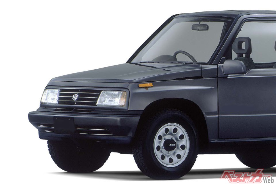 1988年5月に発売開始。スズキが先陣を切って投入したライトクロカン。全長3560mm×全幅1635mm×全高1665mmと、現行のライズ/ロッキーよりも小柄なボディが特徴。