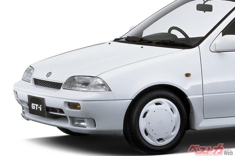 初代カルタスで好評を博したホットモデル「GT-i」は、770kgの軽量ボディに、最高出力115psを発揮する1.3L 直4DOHCエンジンを搭載。3ドアハッチバックは、後継車スイフトがデビューする2000年まで販売されました。
