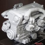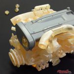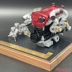 ベストカーWEB「あなたの愛車も見つかるかも? 少数派モデルにこだわる「ハイ・ストーリー」のミニカー そのマニアックな悦び」ではコスト面と販売面から見たレンジ製ミニチュアカーの利点に触れているが、他にもレジンならではの大きな特長がある。それは、ダイキャスト製に比べて精緻なディテールの表現やシャープなエッジの表現に優れたプロポーションの再現性。最近はドア・ボンネット・トランクが開かない(開閉機構を持たない)“プロポーションモデル”と呼ばれるレジン製のミニチュアカーが増えてきているが、そんなレジンの特長も活かして制作されているのが、ここで紹介する日下エンジニアリングのエンジンモデル。
