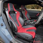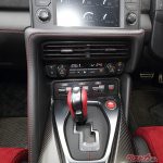 ドアを開けると真っ赤なレザーとアルカンターラを使ったカーボンのRECAROシートが迎えてくれる。