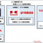 自動車メーカーでもトヨタ以外に、ヤマハや川崎重工が水素エンジンのオートバイを開発中で、ヤマハは2018年にトヨタからの依頼で水素エンジンを開発しているから、すでにノウハウはある程度もっているようだ。