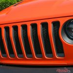 現行型ラングラーのデザインはルーツである、民間用ジープ「CJ-5」のデザインを反映。特にヘッドライトの内側が7スロットグリルにまで食い込んだデザインや大径のフロントフェイシアは色濃く残っている。