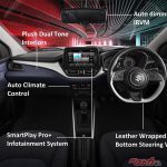 先進装備としては、スマートフォンと接続可能な9インチの大型タッチパネル式ディスプレイオーディオや全方位モニターの採用したほか、車速、エンジン回転数、瞬間燃費などの情報をフルカラーで表示するヘッドアップディスプレイ、データ送受信が可能なコネクテッドサービス「スズキコネクト」を装備する。