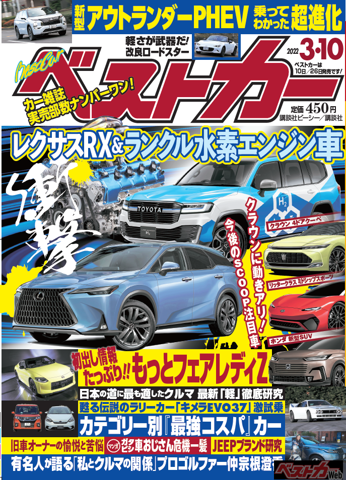 春が近づくなか、発売中のベストカー3月10日号は思わずウキウキする企画がてんこ盛り! 次期レクサスRXと次期クラウンの最新情報に加え、新型フェアレディZの追加ネタも盛りだくさん。さらに、物凄くコスパのいい26台を厳選する特集も! 読み逃しなく!