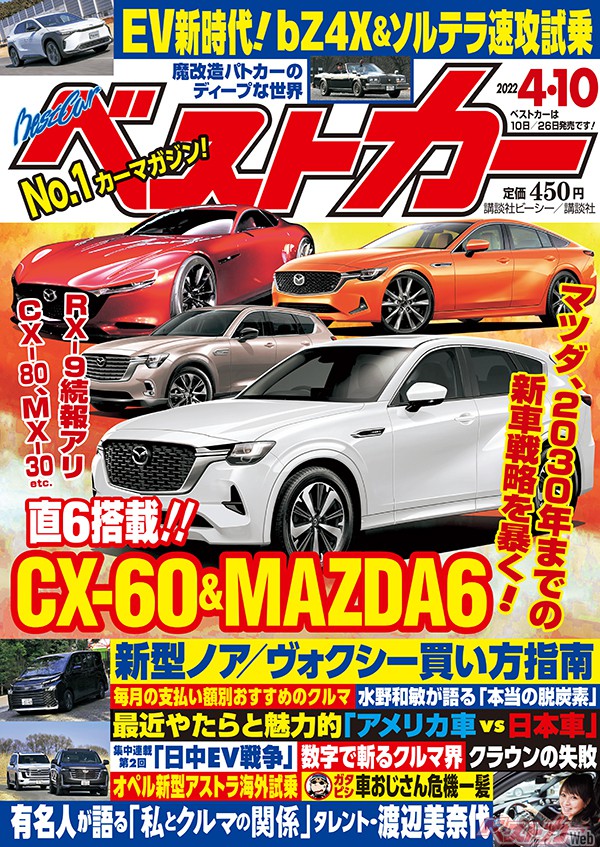 今号のベストカーはいつもに負けず劣らず内容てんこ盛りです!! マツダの今後の戦略を暴くSuper SPY Scoopに始まり、ベストカー独自の視点による試乗&テストものも充実しております。 最新モデルでは2022年年央に発売予定…